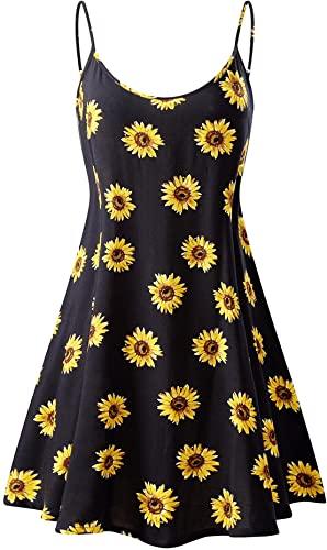 BASIC Women's Sleeveless Adjustable Strappy Summer Beach Swing Dress