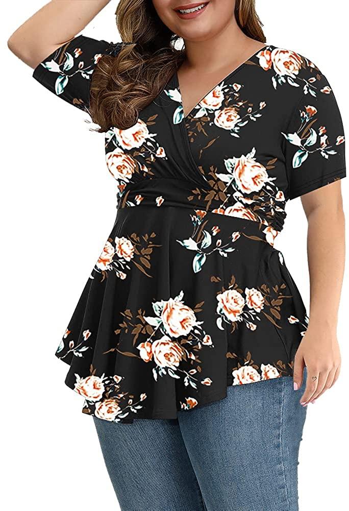 plus size tunic women's short-sleeved summer floral tunic, suitable for leggings